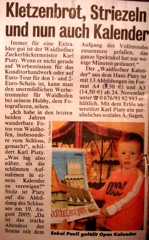 In der Konditorei Karl Piaty am Unteren Stadtplatz 39 in Waidhofen an der Ybbs können Sie sich sowohl in der Auslage als auch im Geschäft ein Exemplar unverbindlich ansehen.